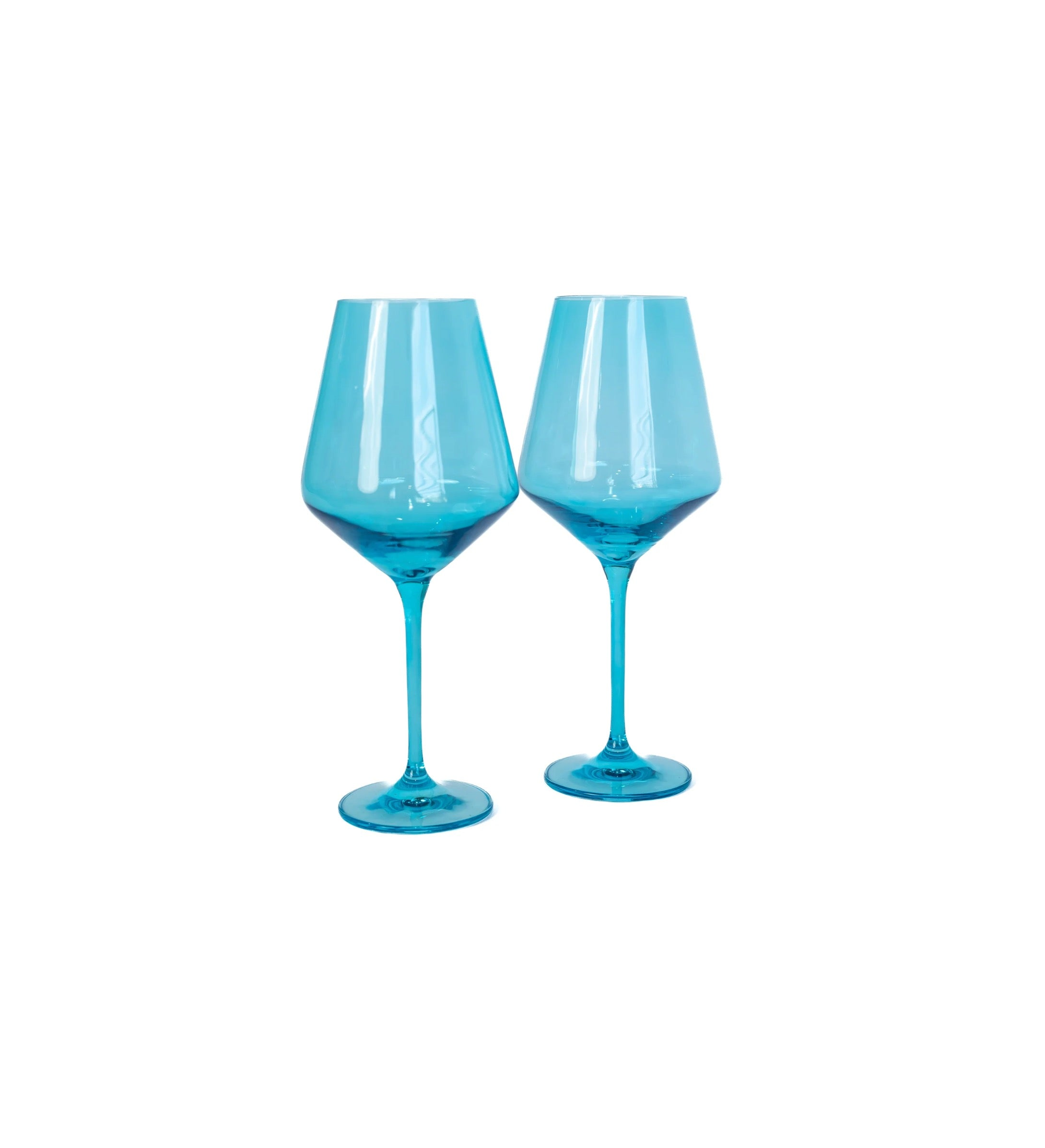 Stemware estelle colored glass estelle colored glass stemware ocean pair Price: $85.00 Qty: 1 2 3 4 5 6 7 8 9 10 11 12 13 14 15 16 17 18 19 20 - Hand-blown colored glass made by glass artisans in Poland - Set of 2 - Dimensions: 9.5 inches tall x 3.9 inches wide - Capacity:16.5 ounces - Quality: Lead, Cadmium and BPA free. - Care Instructions: Hand wash only.