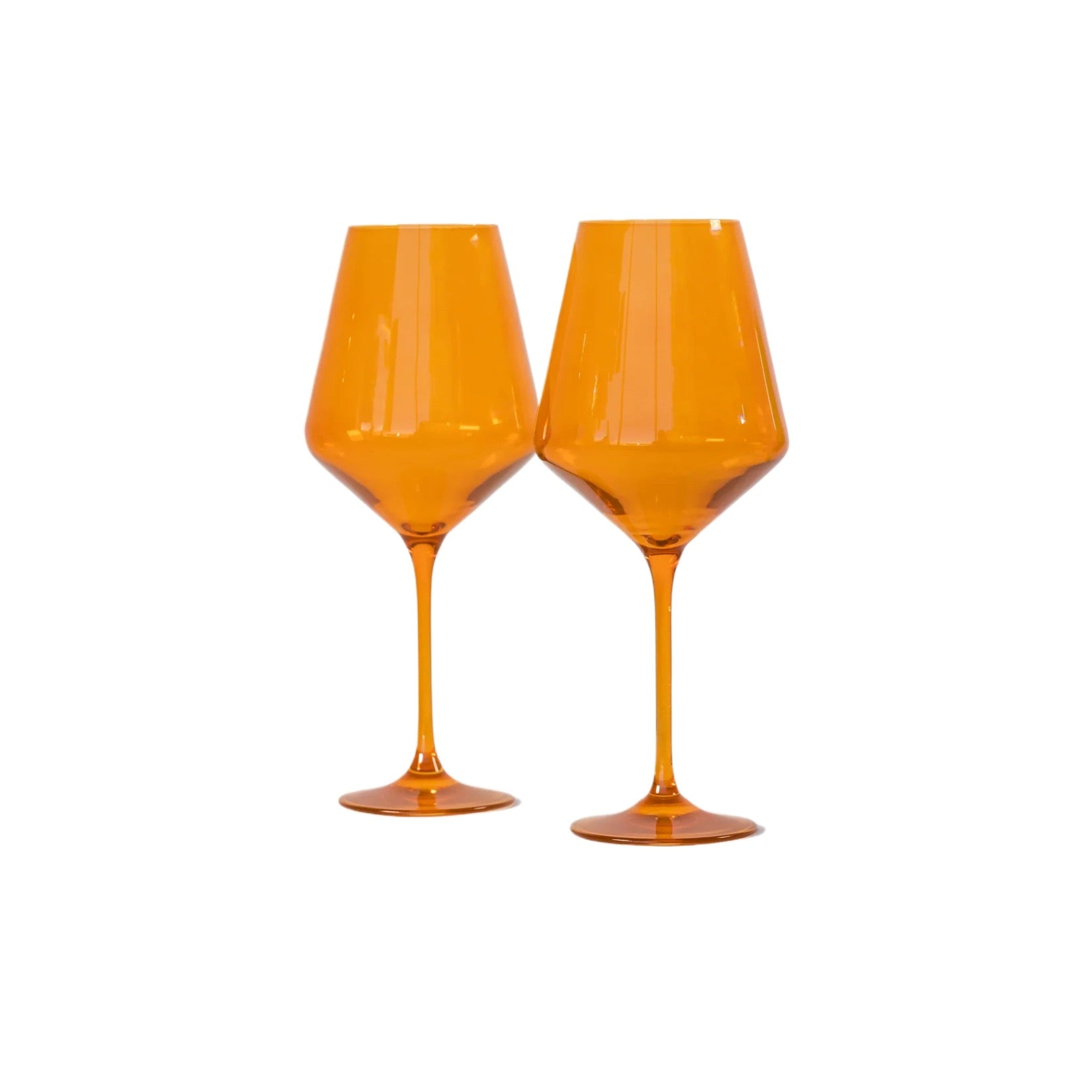 Stemware estelle colored glass estelle colored glass stemware butterscotch pair Price: $85.00 Qty: 1 2 3 4 5 6 7 8 9 10 11 12 13 14 15 16 17 18 19 20 Hand-blown colored glass made by glass artisans in Poland- Set of 2- Dimensions: 9.5 inches tall x 3.9 inches wide- Capacity:16.5 ounces- Care Instructions: Hand wash only.