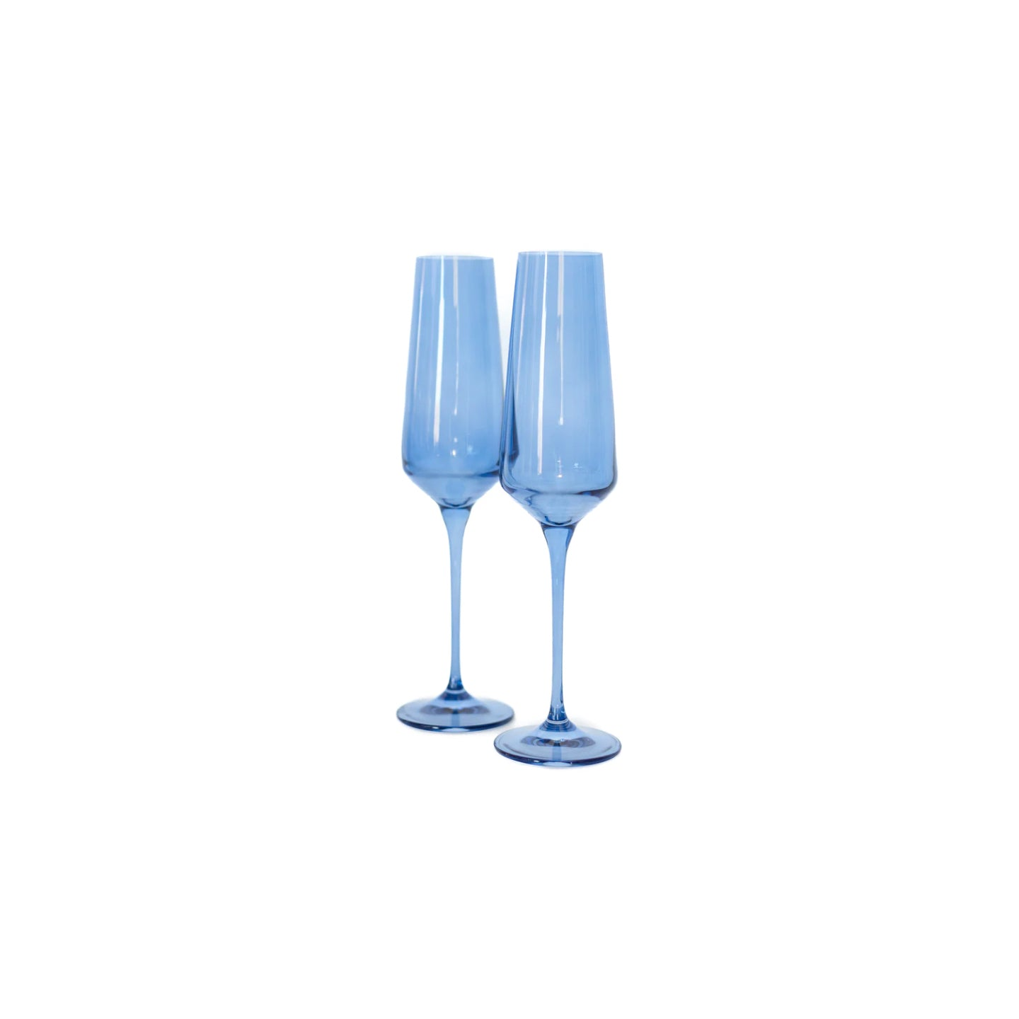 Stemware estelle colored glass estelle colored glass champagne flutes cobalt pair Price: $95.00 Qty: 1 2 3 4 5 6 7 8 9 10 11 12 13 14 15 16 17 18 19 20 - Hand-blown colored glass made by glass artisans in Poland - Set of 2 - Dimensions: 9.8 inches tall x 2.5 inches wide - Capacity: 10 ounces - Care Instructions: Hand wash only.