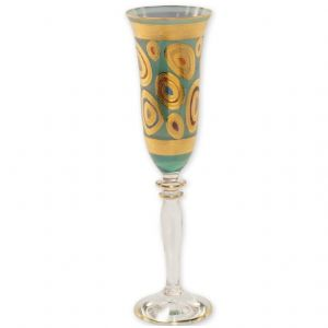 Stemware vietri regalia champagne flute aqua Price: $129.00 Qty: 1 2 3 4 5 6 7 8 9 10 11 12 13 14 15 16 17 18 19 20 9.5'H, 4.5 oz RGI-7650A Designed in Italy Ornate emblems and decorations that are indicative of royalty inspired this unique drinkware collection. The Regalia Aqua Champagne Glass is handpainted in 14-karat gold.