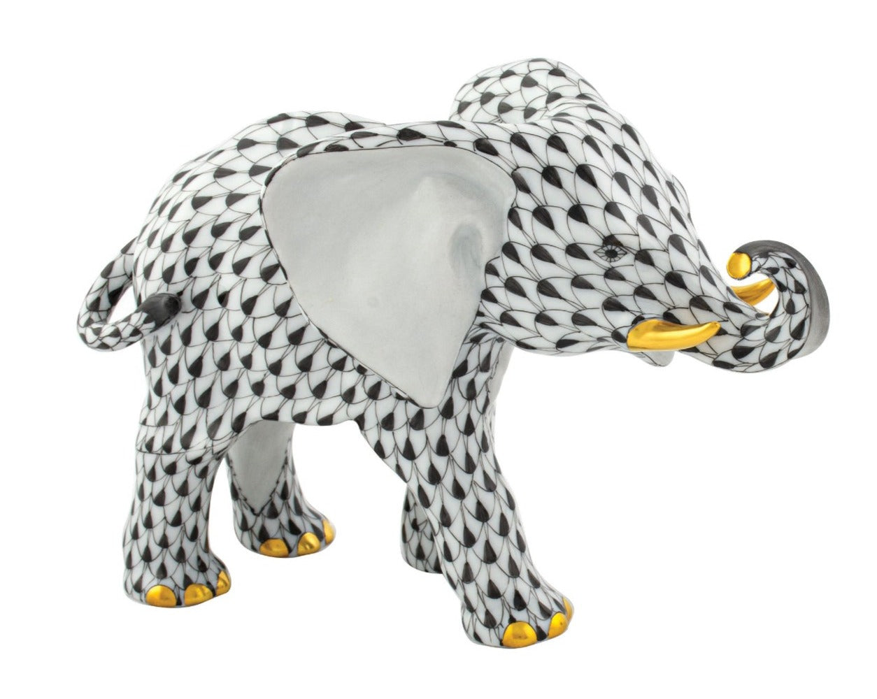 Traditional Gifts herend fishnet roaming elephant figurine, black Price: $805.00 Qty: 1 2 3 4 5 6 7 8 9 10 11 12 13 14 15 16 17 18 19 20 6.25in L X 2.75in W X 4.25in H Porcelain Handpainted in Hungary