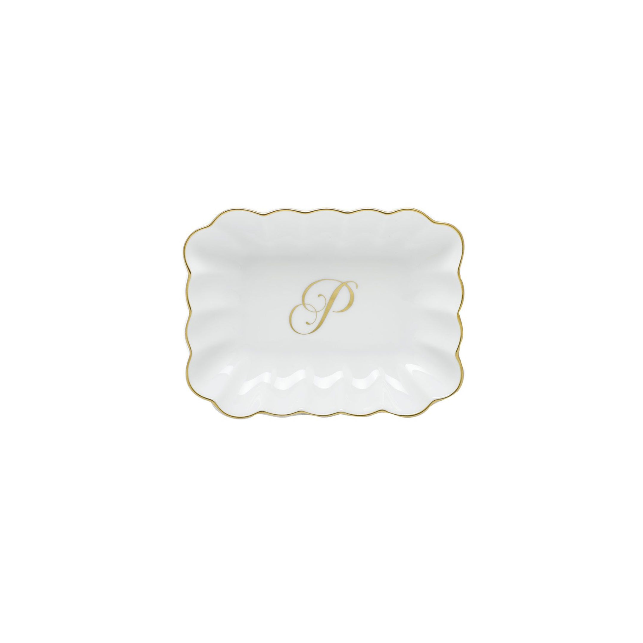 Traditional Gifts herend oblong dish with monogram p Price: $180.00 Qty: 1 2 3 4 5 6 7 8 9 10 11 12 13 14 15 16 17 18 19 20 7.25in L X 5.5in W Porcelain