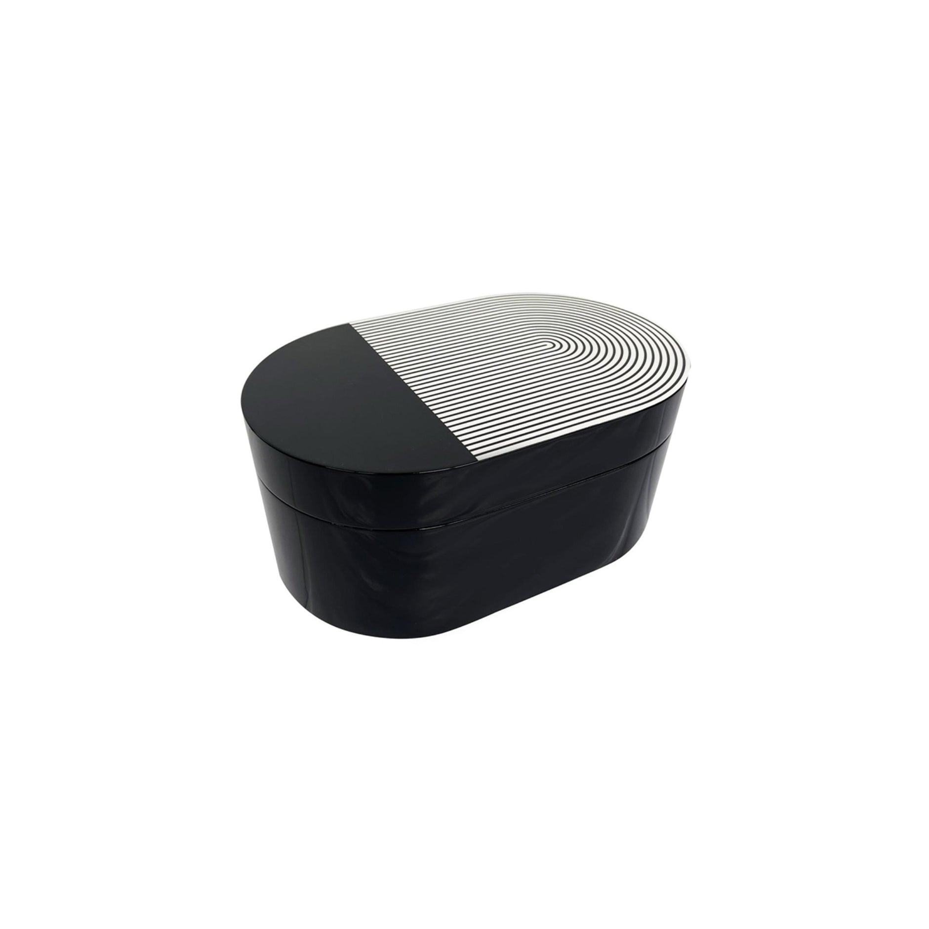 Contemporary Gifts von gern home lacquer stripe box black, large Price: $355.00 Qty: 1 2 3 4 5 6 7 8 9 10 11 12 13 14 15 16 17 18 19 20 10.5? x 7 x 4.7? Lacquer, felt interior, and surface-friendly rubber feetCare Instructions: Wipe clean with a damp clothImported