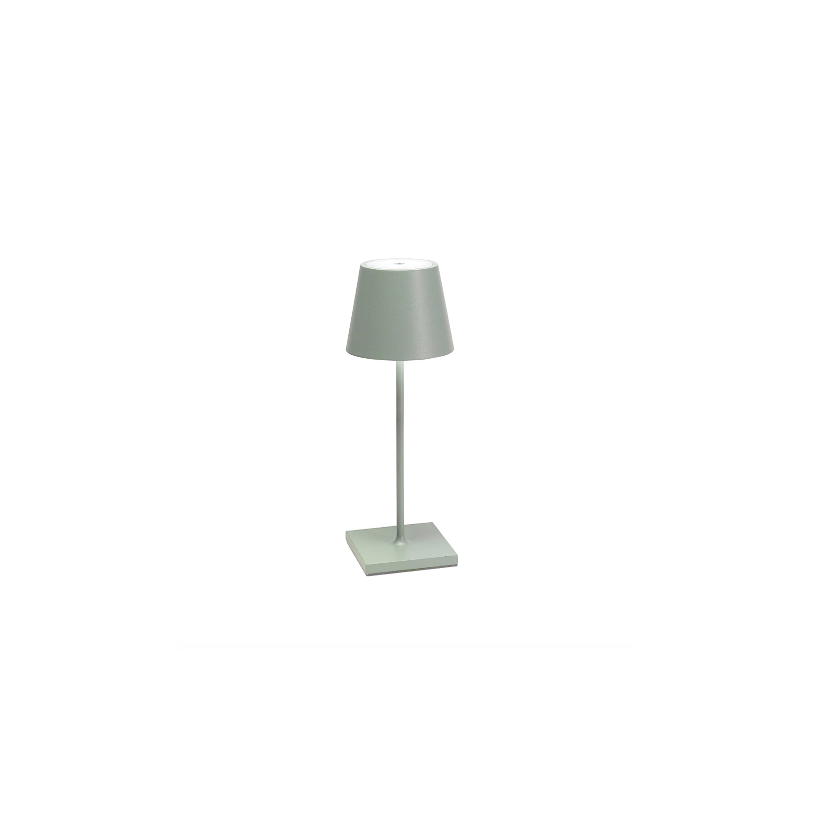 Contemporary Gifts zafferano poldina pro mini lamp, sage Price: $175.00 Qty: 1 2 3 4 5 6 7 8 9 10 11 12 13 14 15 16 17 18 19 20 Touch on/off dimmable LED table lamp Contact induction charging base included LED light with polycarbonate diffuser 9+ hours cordless illumination Indoor/outdoor use (powder-coated finishes) Rechargeable battery 192-200lm, User-settable to 3 color temps, LED/CRI>80/120 volt/2.2w 3 Color Temps (Candle Light 2200K, Warm White 2700K, Bright White 3000K) 4.3"" sq. base x 11.8"" height IP54 rating protection Die-cast aluminum body Powder-coated or metal-leaf finish Weight 3 lbs.