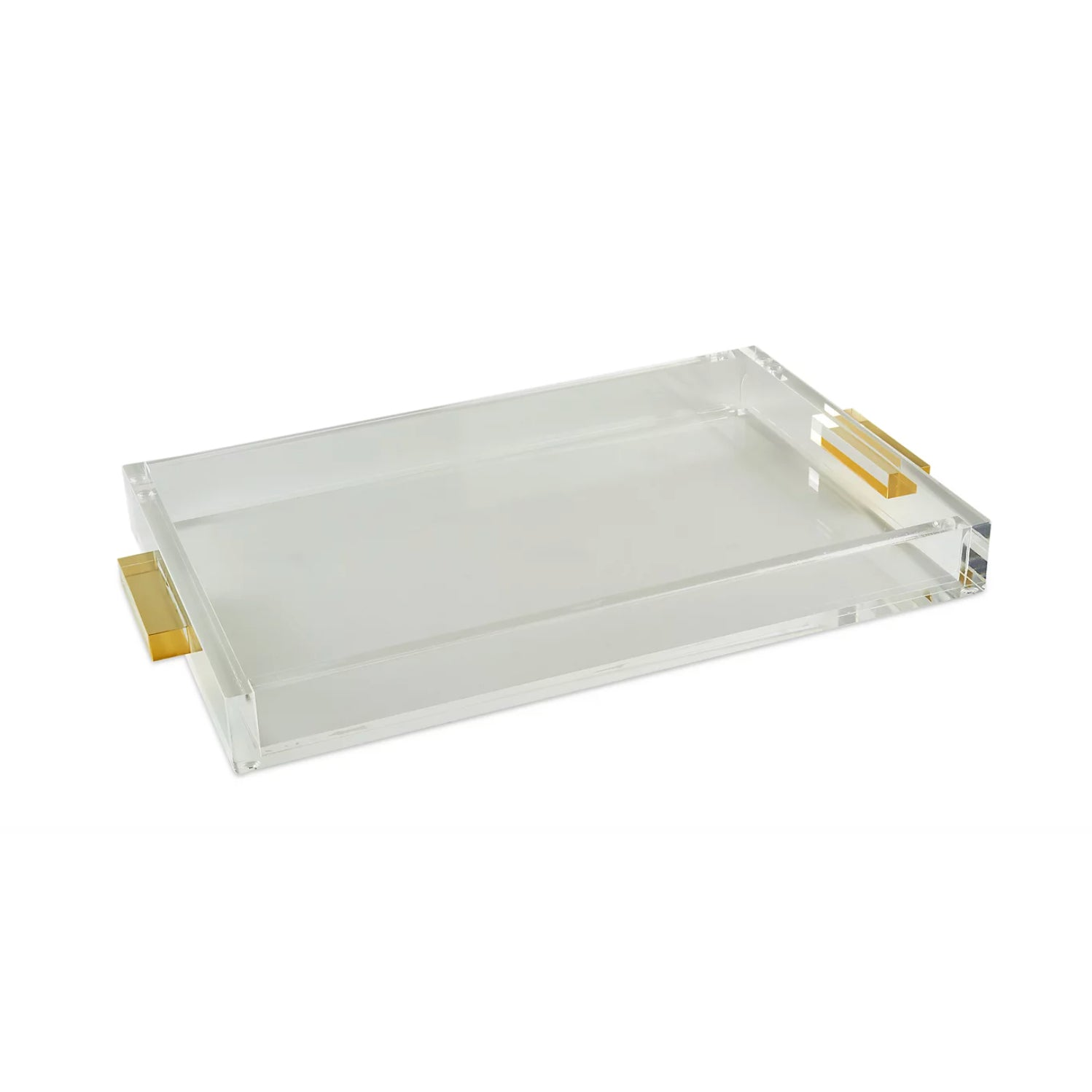 Contemporary Gifts tizo lucite tray with gold handles Price: $125.00 Qty: 1 2 3 4 5 6 7 8 9 10 11 12 13 14 15 16 17 18 19 20 12""W x 16""L x 1.25""H Wipe clean with soft, dry cloth