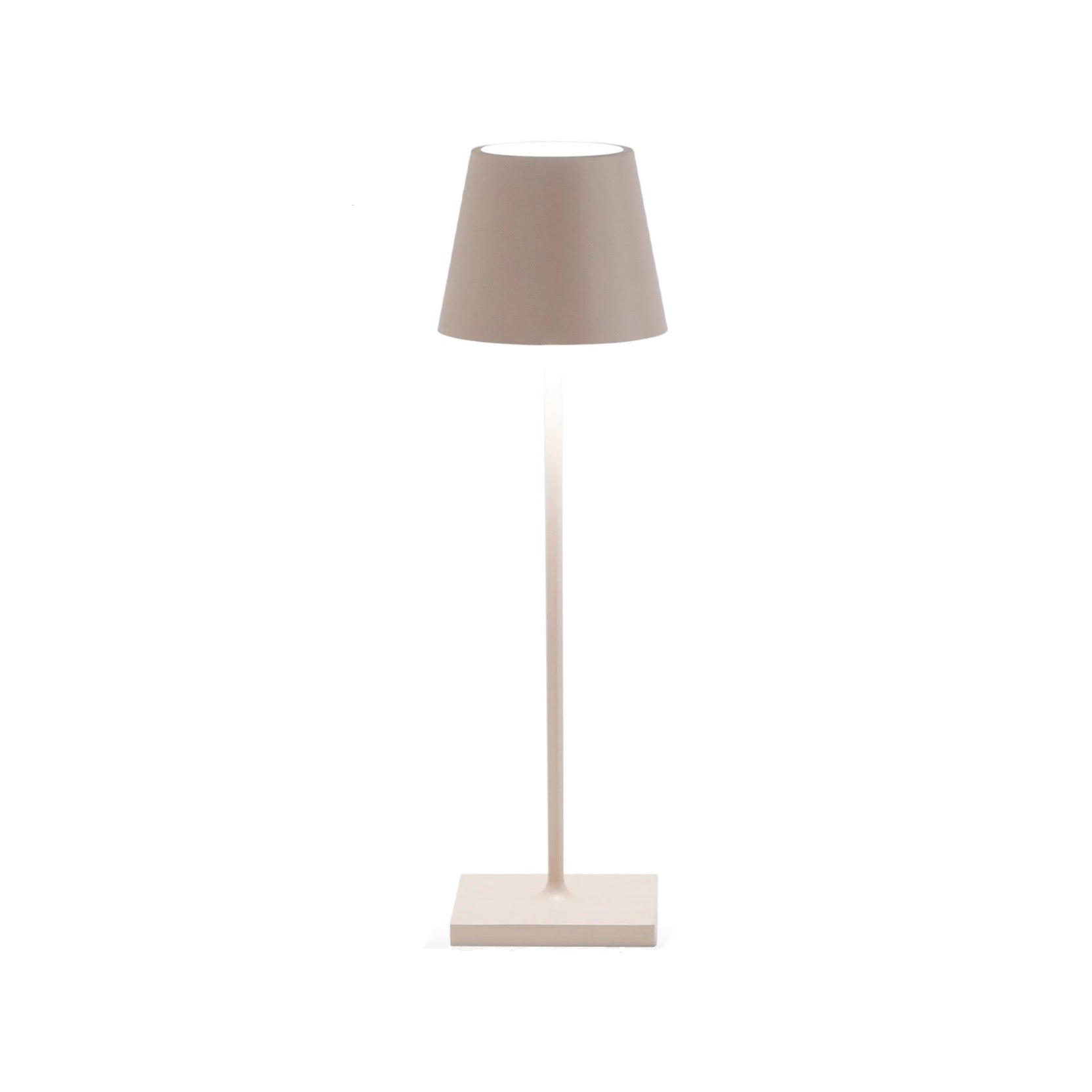 Contemporary Gifts zafferano poldina pro lamp tall, sand Price: $175.00 Qty: 1 2 3 4 5 6 7 8 9 10 11 12 13 14 15 16 17 18 19 20 Touch on/off dimmable LED table lamp Contact induction charging base with USB included LED light with polycarbonate diffuser 9+ hours cordless illumination Indoor/outdoor use (powder-coated finishes) Rechargeable battery 1-year warranty 4.3"" sq. base x 15"" height
