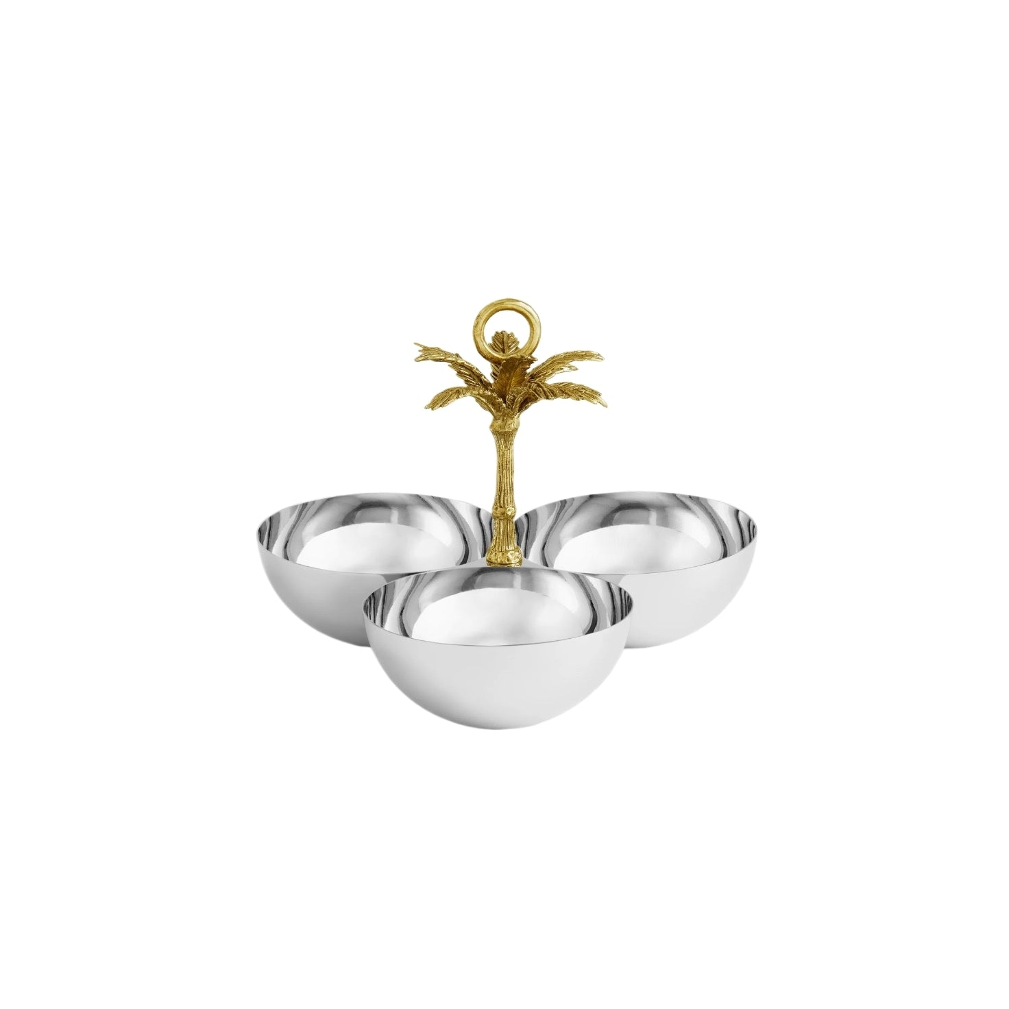 Contemporary Gifts michael aram palm triple bowl Price: $210.00 Qty: 1 2 3 4 5 6 7 8 9 10 11 12 13 14 15 16 17 18 19 20 DETAILS 9"" Lx 9"" W x 7.5"" H, 10 Oz. Each MATERIALS Stainless Steel Antique Goldtone Not Dishwasher Safe As with all metals, never place in microwave oven Hand wash with gentle detergent, dry immediatelywith soft cloth Avoid any detergent with lemon or other acidic agents Do not use abrasive cleaners, steel wool, or scouringpads that can scratch and dull metal surfaces Do not soak, even in plain water, or leave unwashedovernight