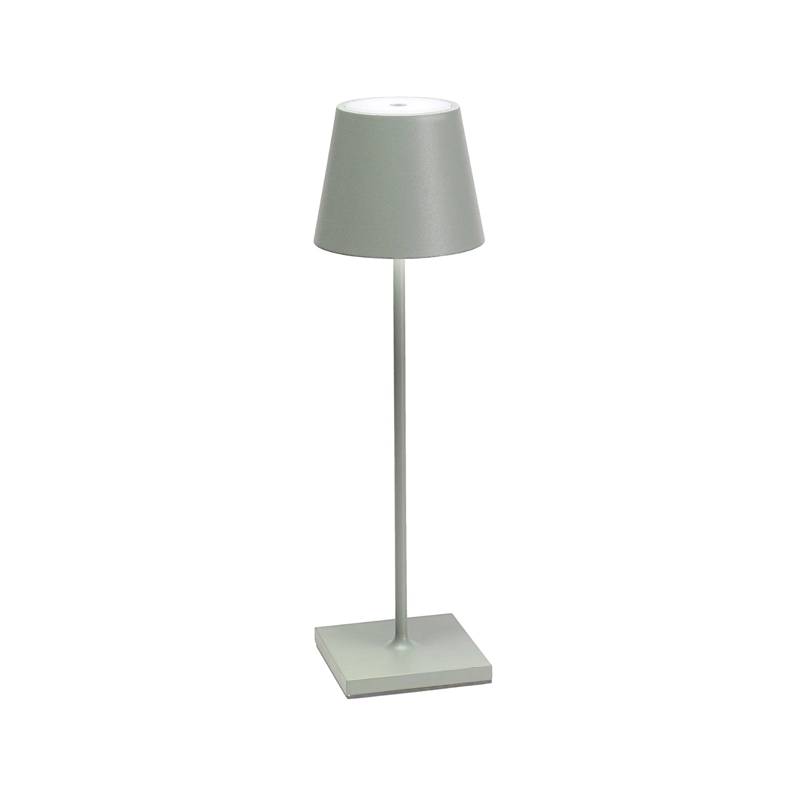 Contemporary Gifts zafferano poldina pro lamp tall, sage Price: $175.00 Qty: 1 2 3 4 5 6 7 8 9 10 11 12 13 14 15 16 17 18 19 20 Touch on/off dimmable LED table lamp Contact induction charging base with USB included LED light with polycarbonate diffuser 9+ hours cordless illumination Indoor/outdoor use (powder-coated finishes) Rechargeable battery 1-year warranty 4.3"" sq. base x 15"" height