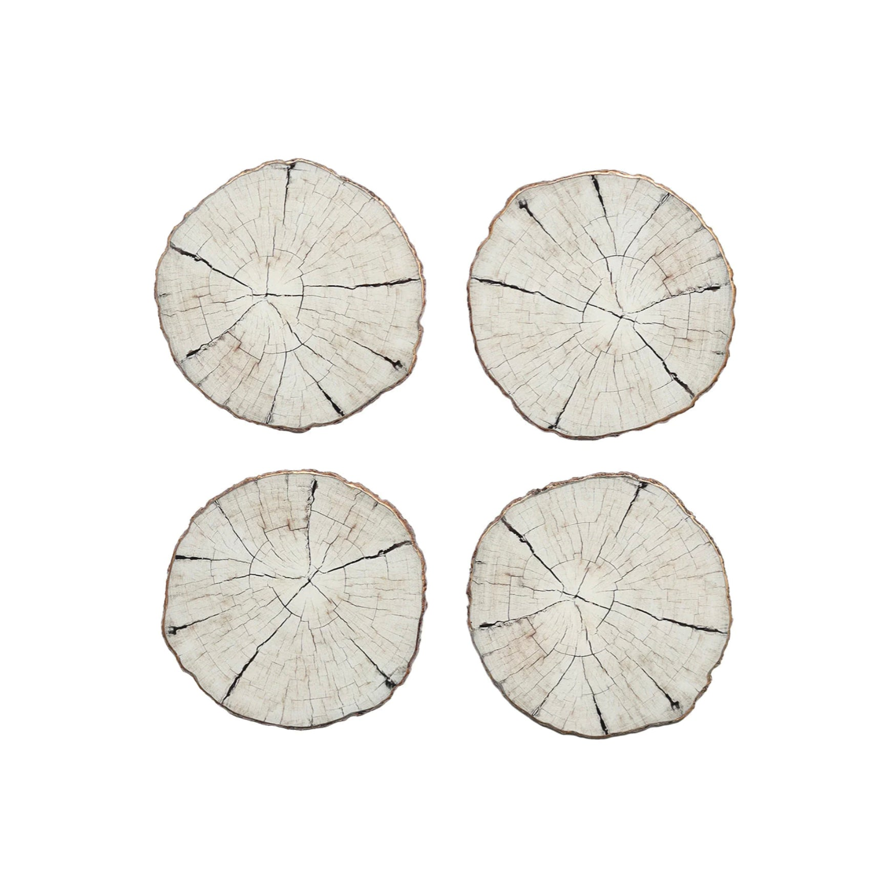 Contemporary Gifts kim seybert birch coasters in ivory & natural, set of four Price: $51.00 Qty: 1 2 3 4 5 6 7 8 9 10 11 12 13 14 15 16 17 18 19 20 DIMENSIONS: 4.62"" Length x 4.75"" Width x .25"" Height WEIGHT: 0.6 lb. MATERIALS: 70% MDF, 20% Acrylic, 10% Cork CARE: Wipe clean with a damp cloth