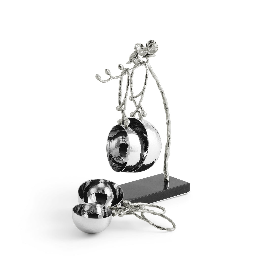 Contemporary Gifts michael aram white orchid measuring cup set Price: $185.00 Qty: 1 2 3 4 5 6 7 8 9 10 11 12 13 14 15 16 17 18 19 20 DETAILS Set of 4 Measuring Cups Stand 5.5""L x 2.75""W x 10.5""H Measuring Cup Sizes: 1 Cup, 1/2 Cup ,1/3 Cup, 1/4 Cup MATERIALS Stainless Steel Nickelplate Marble