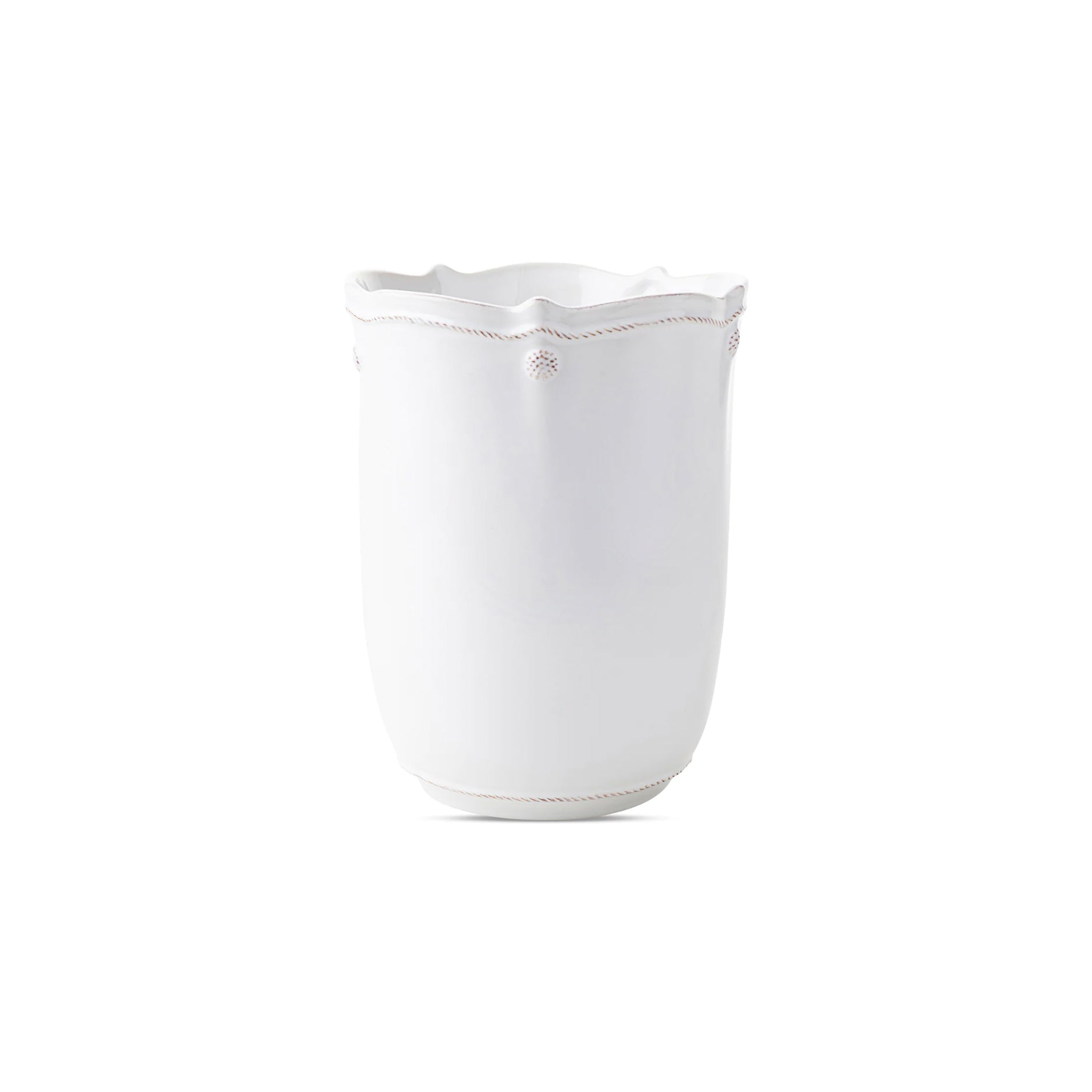 Contemporary Gifts juliska berry & thread whitewash wastebasket Price: $140.00 Qty: 1 2 3 4 5 6 7 8 9 10 11 12 13 14 15 16 17 18 19 20 Measurements: 8.0""W x 10.0""H x 8.0""L Made in: Portugal Made of: Ceramic Volume: 5.09375 Qt.