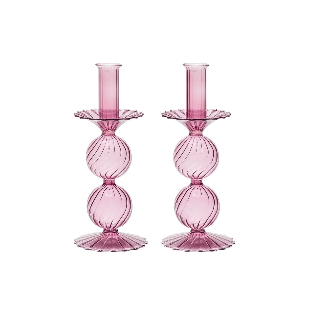 Contemporary Gifts kim seybert bella short candlesticks pair, lavender Price: $95.00 Qty: 1 2 3 4 5 6 7 8 9 10 11 12 13 14 15 16 17 18 19 20 COLOR: Lavender DIMENSIONS: 3.4"" Length x 3.4"" Width x 8.25"" Height WEIGHT: 0.24 lb MATERIALS: 100% Glass CARE: Wipe clean with wet cloth.