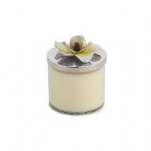 Contemporary Gifts michael aram magnolia candle Price: $75.00 Qty: 1 2 3 4 5 6 7 8 9 10 11 12 13 14 15 16 17 18 19 20 4.5'H, 3.75' Dia., 13.5 Oz.; Nickelplate, Enamel, Glass, Soy Wax