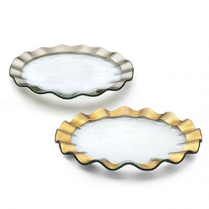 Contemporary Gifts annieglass ruffle platinum buffet plate Price: $141.00 Qty: 1 2 3 4 5 6 7 8 9 10 11 12 13 14 15 16 17 18 19 20 13' Handmade Glass Plate Sustainably Made in the U.S.A Durable, Chip-Resistant Dishwasher Safe #P144