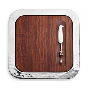 Contemporary Gifts mary jurek designs sierra serve tray with wood insert & cheese knife Price: $330.00 Qty: 1 2 3 4 5 6 7 8 9 10 11 12 13 14 15 16 17 18 19 20 14? x 14? – 3 lbs 18/8 stainless steel with acacia wood (removable insert) Responsibly Sourced Hand wash – Wood Only Dishwasher safe – Stainless Steel Food Safe
