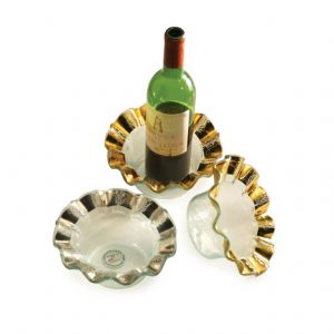 Contemporary Gifts annieglass ruffle wine coaster Price: $113.00 Qty: 1 2 3 4 5 6 7 8 9 10 11 12 13 14 15 16 17 18 19 20 #G/P185 7 3/4 inches Handmade in CA