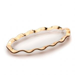 Contemporary Gifts annieglass ruffle gold oval platter Price: $239.00 Qty: 1 2 3 4 5 6 7 8 9 10 11 12 13 14 15 16 17 18 19 20 G 181 14 1/2 x 9 1/2 inches Handmade in CA