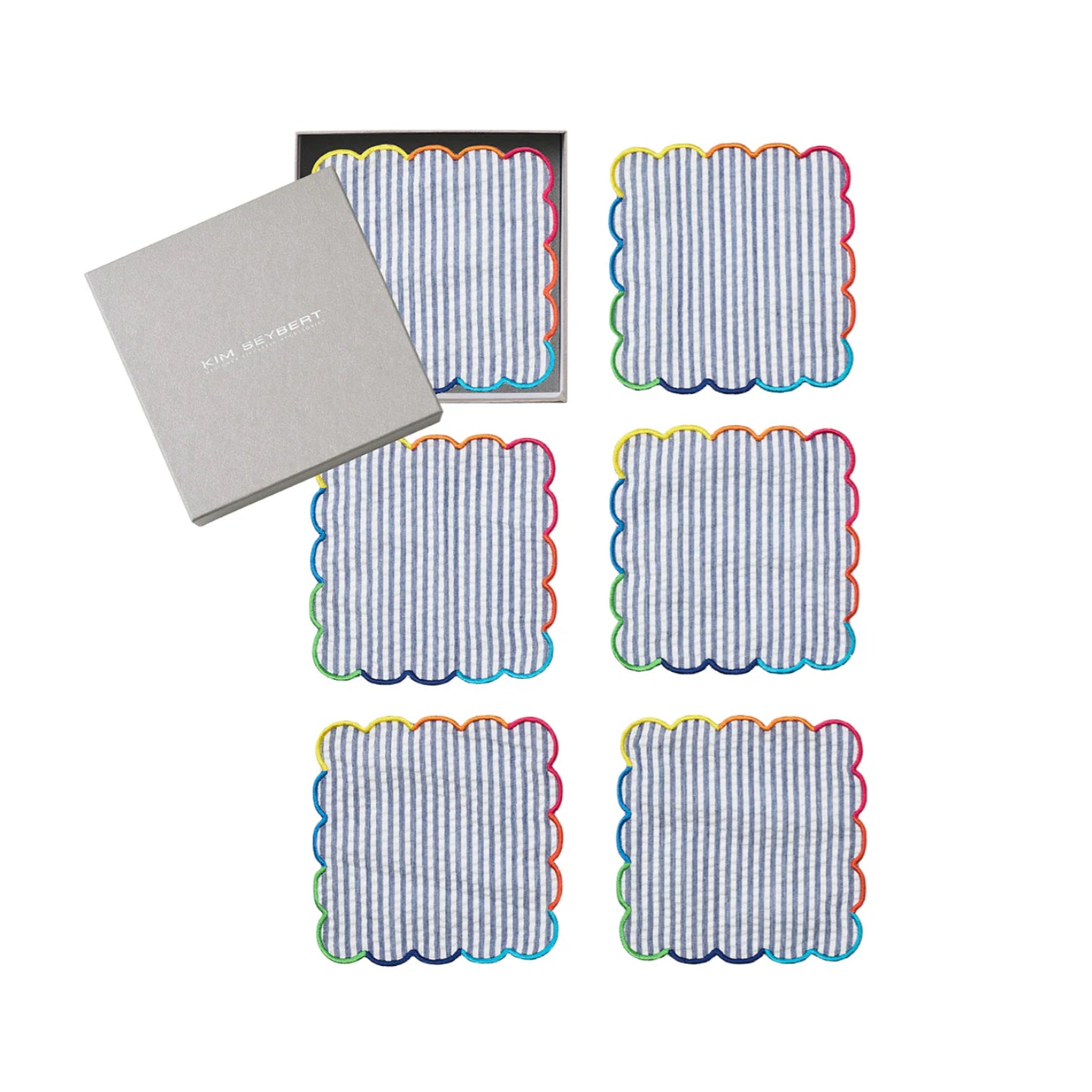 Linens kim seybert fiesta cocktail napkins multicolor, set of six Price: $56.00 Qty: 1 2 3 4 5 6 7 8 9 10 11 12 13 14 15 16 17 18 19 20 DIMENSIONS: 6"" Length x 6"" Width MATERIALS: 100% Cotton