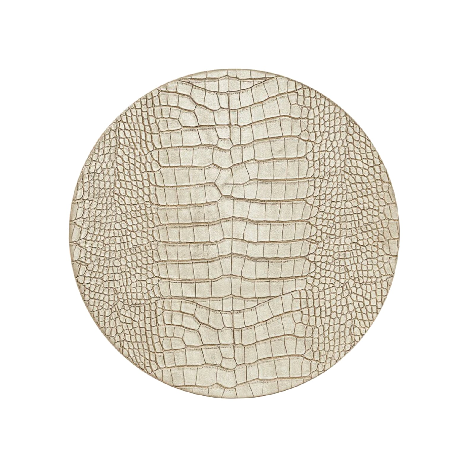 Linens kim seybert croco placemats gold, set of four Price: $148.00 Qty: 1 2 3 4 5 6 7 8 9 10 11 12 13 14 15 16 17 18 19 20 DIMENSIONS: 15"" Length x 15"" Width x 0.1"" Height MATERIALS: 100% Polyurethane with PVC Backing IMPORTED