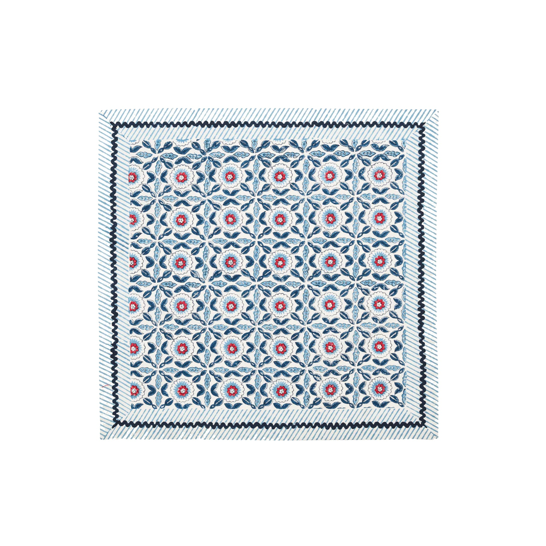 Linens kim seybert majorelle napkins red/white/blue, set of four Price: $68.00 Qty: 1 2 3 4 5 6 7 8 9 10 11 12 13 14 15 16 17 18 19 20 100% Cotton 21 x 21 inches Machine wash separately in cool water on a gentle cycle with a mild detergent like Le Blanc Linen Wash. Smooth edge and dry flat, or iron on a linen setting if desired. Use spot remover if necessary, but do not soak in bleach, as any colored embroidery may run. Do not dry clean.