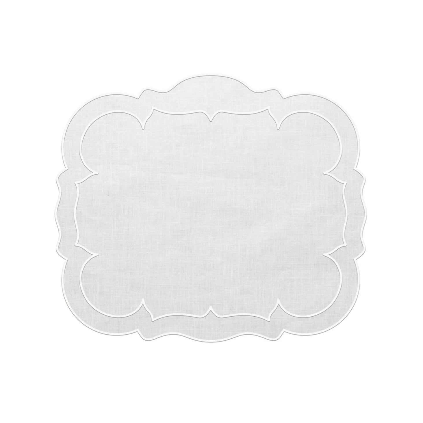 Linens skyros linho scalloped rectangular placemat white, set of two Price: $78.00 Qty: 1 2 3 4 5 6 7 8 9 10 11 12 13 14 15 16 17 18 19 20 These exquisite mats are Made in Portugal of 100% pure linen and treated with a light acrylic coating. Caring for the Linho Collection mats is quite easy. Simply wipe a spill clean with a damp cloth! It’s just that effortless, as the mats are extremely stain resistant. Linho mats are designed to add a beautiful monogram, either at the top or center, but are just as exquisite without one. 18.75? x 15.25? 100% Linen w/ light acrylic coating