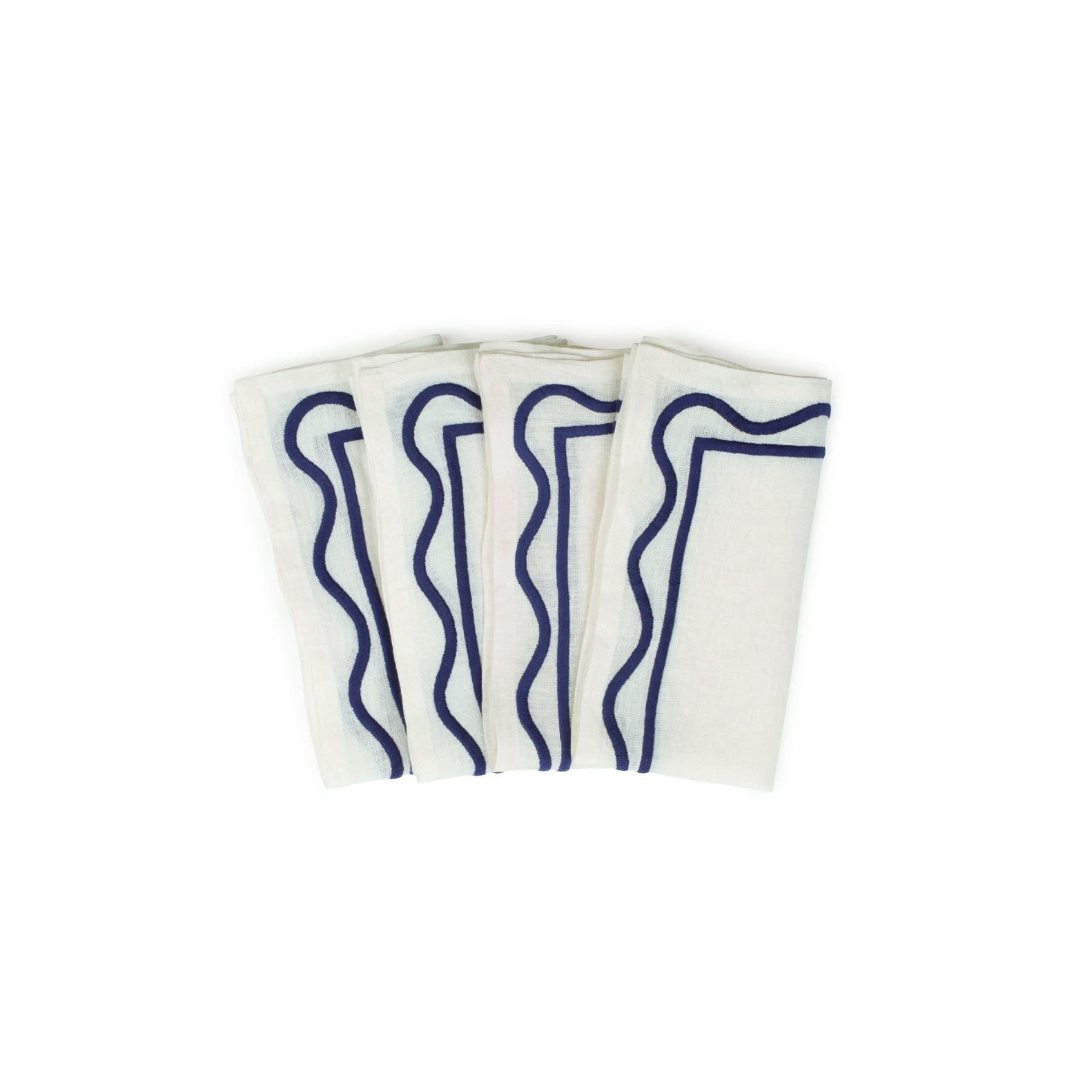 Linens misette colorblock embroidered linen napkins dark blue, set of four Price: $160.00 Qty: 1 2 3 4 5 6 7 8 9 10 11 12 13 14 15 16 17 18 19 20 Set of 4 Color: Dark Blue Size: 20"" x 20"" 100% linen with embroidery Made in India 100% linen Machine wash cold, tumble dry low Low iron as needed Do not bleach Do not dry clean
