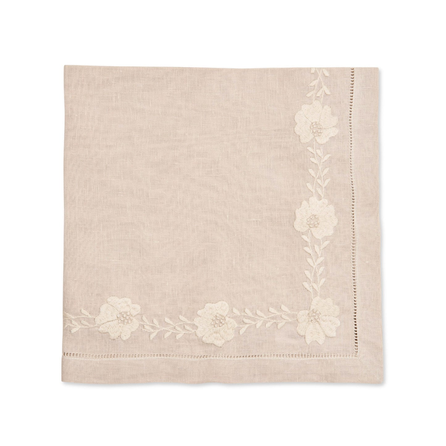 Linens deborah rhodes floral petal napkins taupe, set of four Price: $164.00 Qty: 1 2 3 4 5 6 7 8 9 10 11 12 13 14 15 16 17 18 19 20 22? x 22?, Linen, Imported. Care: Hand or machine wash on a delicate cycle separately with a mild detergent. Machine dry on low and remove promptly. Steam iron on reverse side. Do not bleach