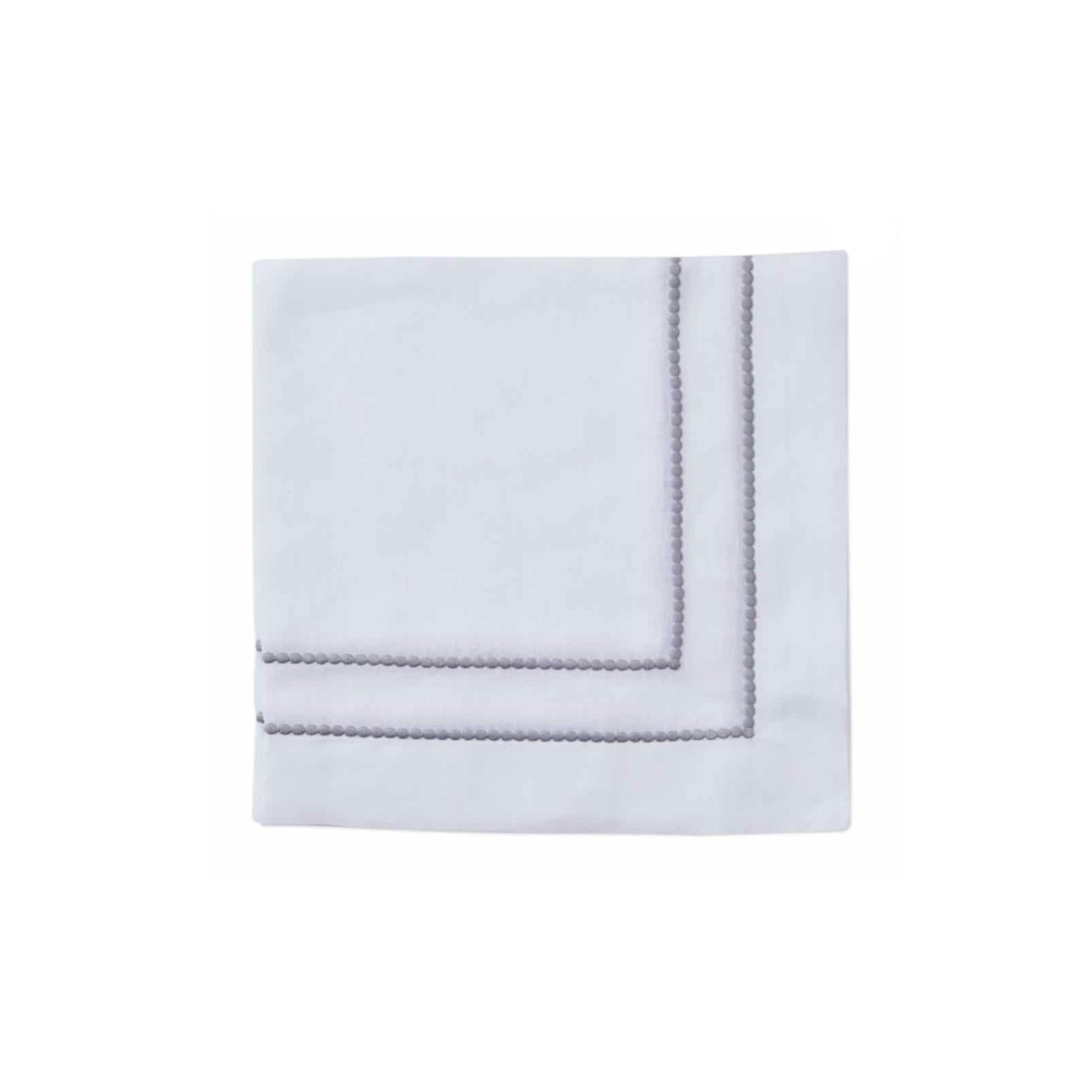 Linens deborah rhodes bauble embroidered napkin light grey, set of four Price: $144.00 Qty: 1 2 3 4 5 6 7 8 9 10 11 12 13 14 15 16 17 18 19 20 22? x 22?, Linen, Imported. Care: Hand or machine wash on a delicate cycle separately with a mild detergent. Machine dry on low and remove promptly. Steam iron on reverse side. Do not bleach