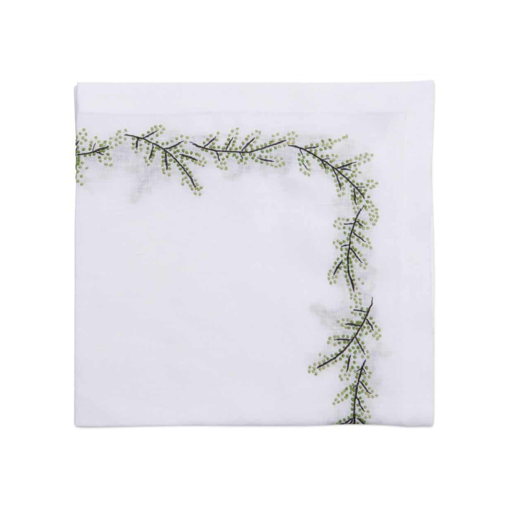Linens deborah rhodes floral branch embroidered napkins set of four, grass Price: $156.00 Qty: 1 2 3 4 5 6 7 8 9 10 11 12 13 14 15 16 17 18 19 20 Set of Four Embroidered by hand. 22? x 22?, 100% Linen, Imported. Care: Machine wash cold, gentle cycle. Tumble dry on low heat. Remove while damp and iron on linen setting.