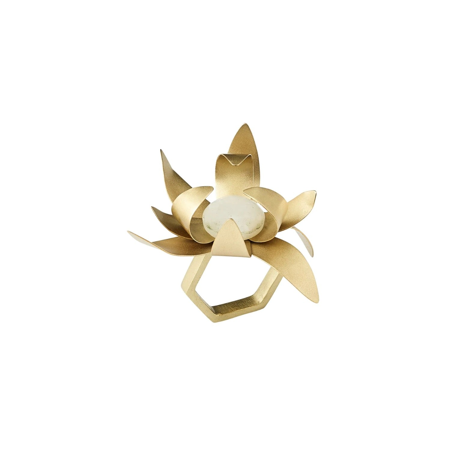 Linens kim seybert sunflower napkin ring in gold & crystal, set of four Price: $140.00 Qty: 1 2 3 4 5 6 7 8 9 10 11 12 13 14 15 16 17 18 19 20 COLOR: Gold/Crystal DIMENSIONS: 3.75"" x 3.75"" x 3"" WEIGHT: 1.2 lb. MATERIALS: 80% brass, 20% rock crystal CARE: Wipe clean with a damp cloth.