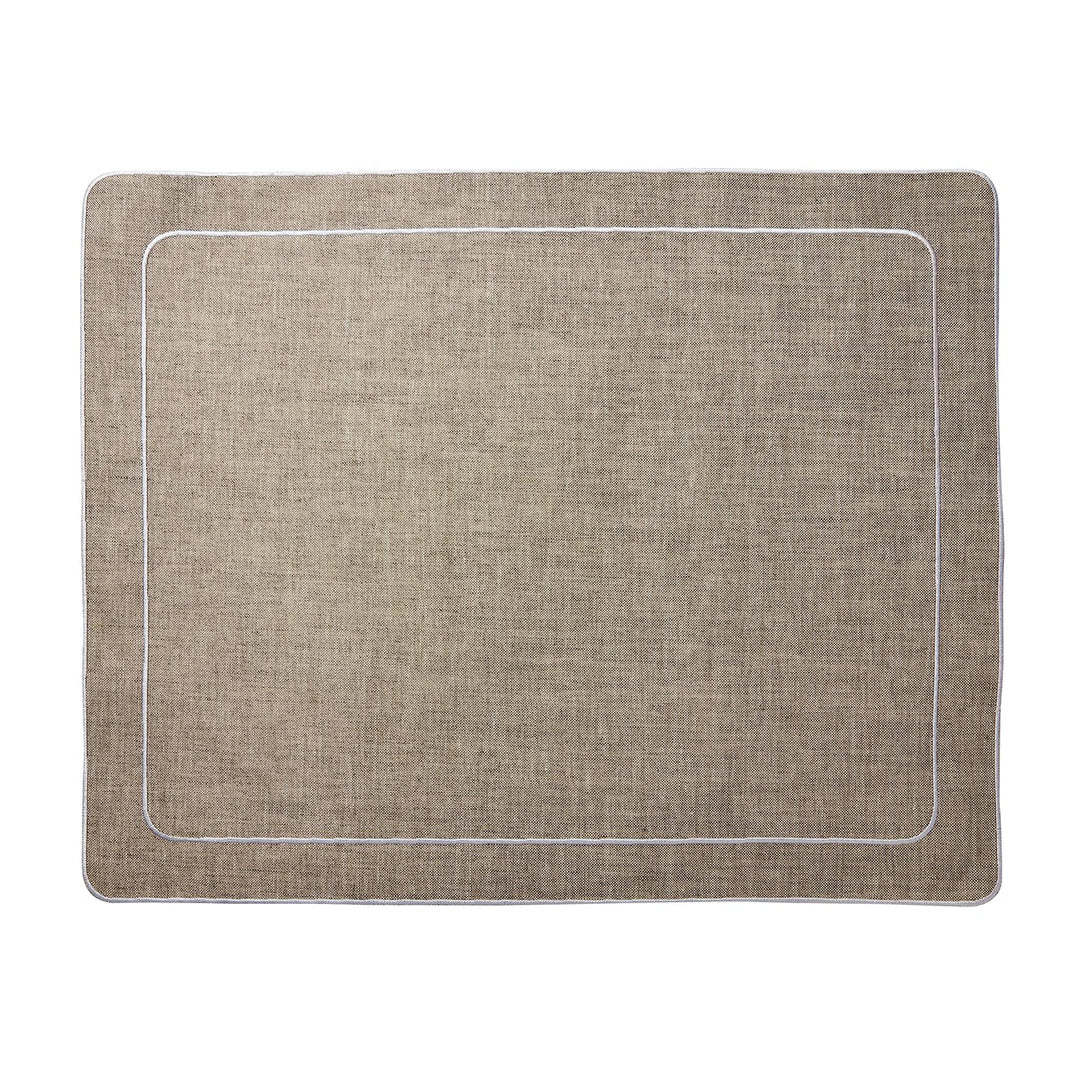 Linens skyros linho simple rectangular placemat dark natural / white - set of two Price: $78.00 Qty: 1 2 3 4 5 6 7 8 9 10 11 12 13 14 15 16 17 18 19 20 These exquisite mats are Made in Portugal of 100% pure linen and treated with a light acrylic coating. A beautiful double embroidered border follows the lines of the sophisticated and fabulous shapes. Linho linens are a dining essential as they are the perfect complement to any table setting, from casual to the most formal. Caring for the Linho Collection mats is quite easy. Simply wipe a spill clean with a damp cloth! It’s just that effortless, as the mats are extremely stain resistant. Should heavier spills occur, machine wash the mats on a cold/gentle cycle, air dry and press on the reverse side. Additional Information Dimensions Material 18.5"" x 14.75"" Linen