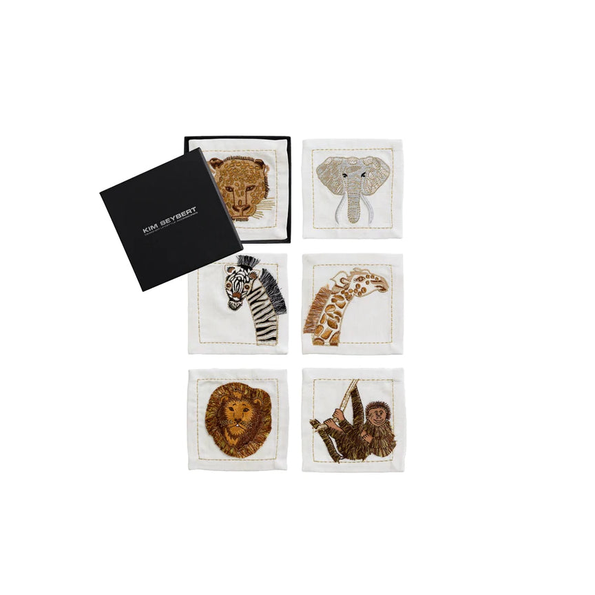 Linens kim seybert out of africa cocktail napkins in white & multi, set of six Price: $126.00 Qty: 1 2 3 4 5 6 7 8 9 10 11 12 13 14 15 16 17 18 19 20 DIMENSIONS: 6""D x 6""W x 0.1""HWEIGHT: 0.6 lb.MATERIALS: 50% Cotton, 50% RayonCARE: Machine wash cold with like colors on gentle cycle. Machine dry low. Remove promptly. Steam iron while damp on reverse side. Do not bleach.