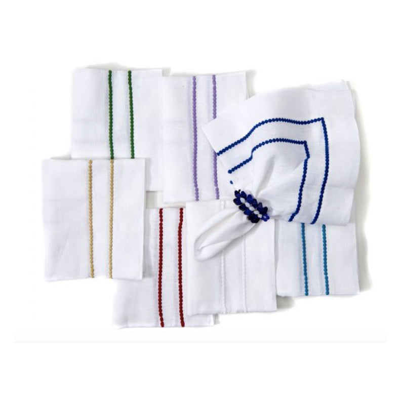 Linens deborah rhodes bauble embroidered napkin green, set of four Price: $144.00 Qty: 1 2 3 4 5 6 7 8 9 10 11 12 13 14 15 16 17 18 19 20 22? x 22?, Linen, Imported. Care: Hand or machine wash on a delicate cycle separately with a mild detergent. Machine dry on low and remove promptly. Steam iron on reverse side. Do not bleach