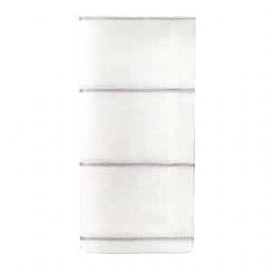 Linens bodrum metallic thread napkins silver set of four Price: $95.00 Qty: 1 2 3 4 5 6 7 8 9 10 11 12 13 14 15 16 17 18 19 20 This delicately refined napkin collection is perfect for that person who wants just a touch of shine. The metallic thread woven through these lusciously soft napkins is just the right touch. Set of 4 napkins Size: 22' x 22' Material: 95% Linen, 5% Polyester Care: Machine wash cold delicate cycle; Line dry or Air fluff;Do not bleach; Iron if needed