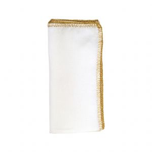 Linens kim seybert gold crochet edge white linen napkin set of four Price: $104.00 Qty: 1 2 3 4 5 6 7 8 9 10 11 12 13 14 15 16 17 18 19 20 COLOR: White/Gold DIMENSIONS: 21' x 21' x 0.1' WEIGHT: 0.2 lb. MATERIALS: 100% linen CARE: Machine wash warm with like colors, machine dry low, remove promptly steam, iron while damp on reverse side, do not bleach