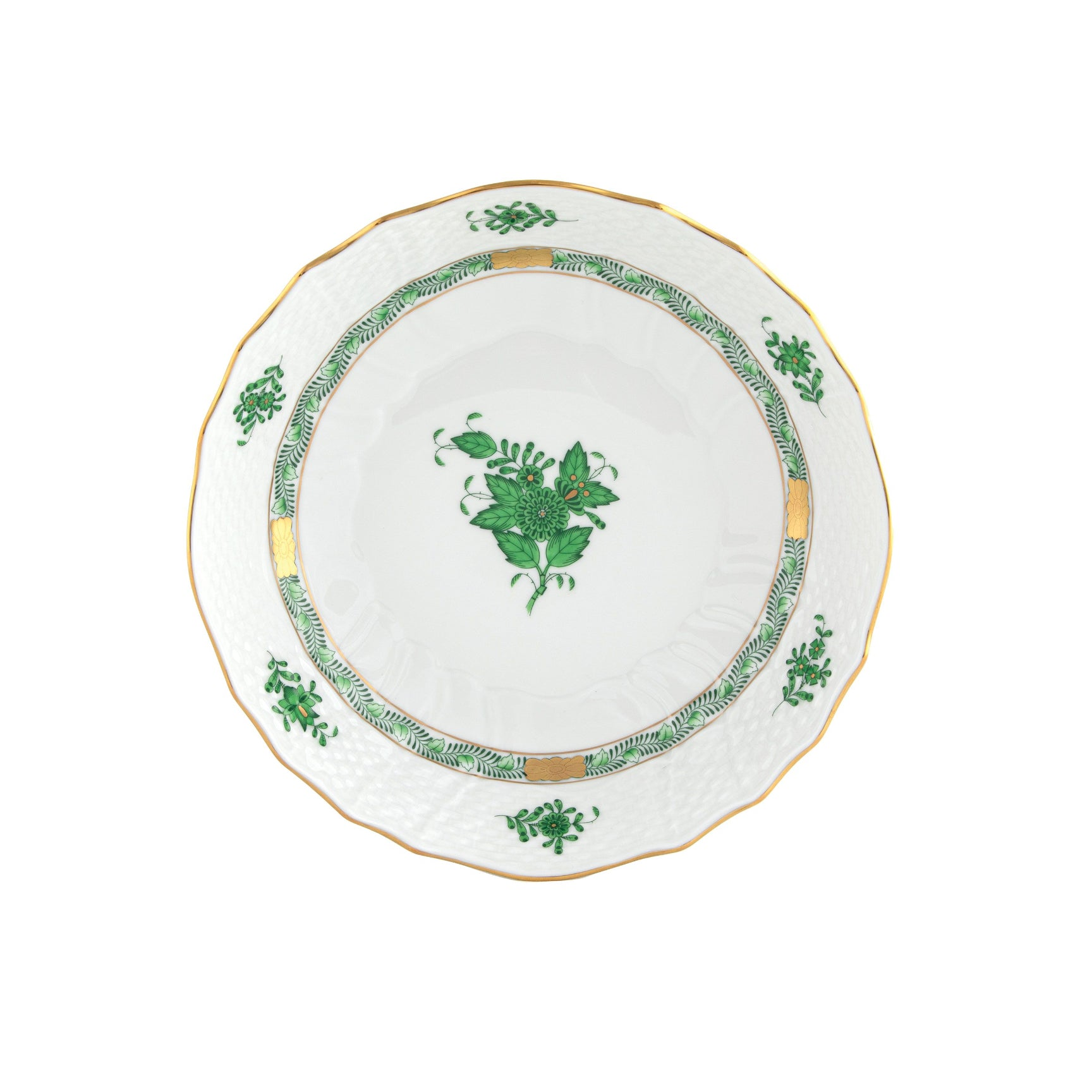 Fine China herend chinese bouquet green scalloped dinner bowl Price: $190.00 Qty: 1 2 3 4 5 6 7 8 9 10 11 12 13 14 15 16 17 18 19 20 8in D X 2in H Handpainted in Hungary