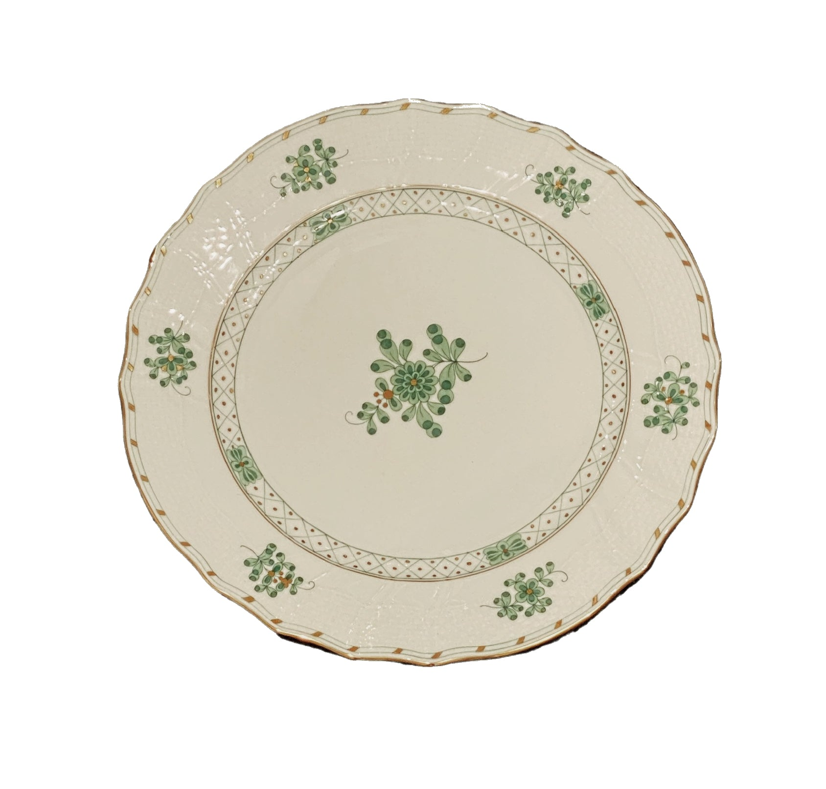 Fine China herend green garden dinner plate Price: $237.00 Qty: 1 2 3 4 5 6 7 8 9 10 11 12 13 14 15 16 17 18 19 20 Special Import 10.5 inches Handpainted in Hungary