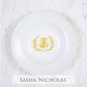Fine China sasha nicholas weave rim soup with wreath gold monogram Price: $62.00 Qty: 1 2 3 4 5 6 7 8 9 10 11 12 13 14 15 16 17 18 19 20 We will contact you to finalize all monogram orders.