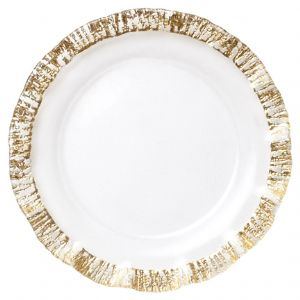 Fine China vietri rufolo glass gold service plate/charger Price: $51.00 Qty: 1 2 3 4 5 6 7 8 9 10 11 12 13 14 15 16 17 18 19 20 The Rufolo Glass Gold Service Plate/Charger creates a luxurious table setting. 12.75'D RUF-5221
