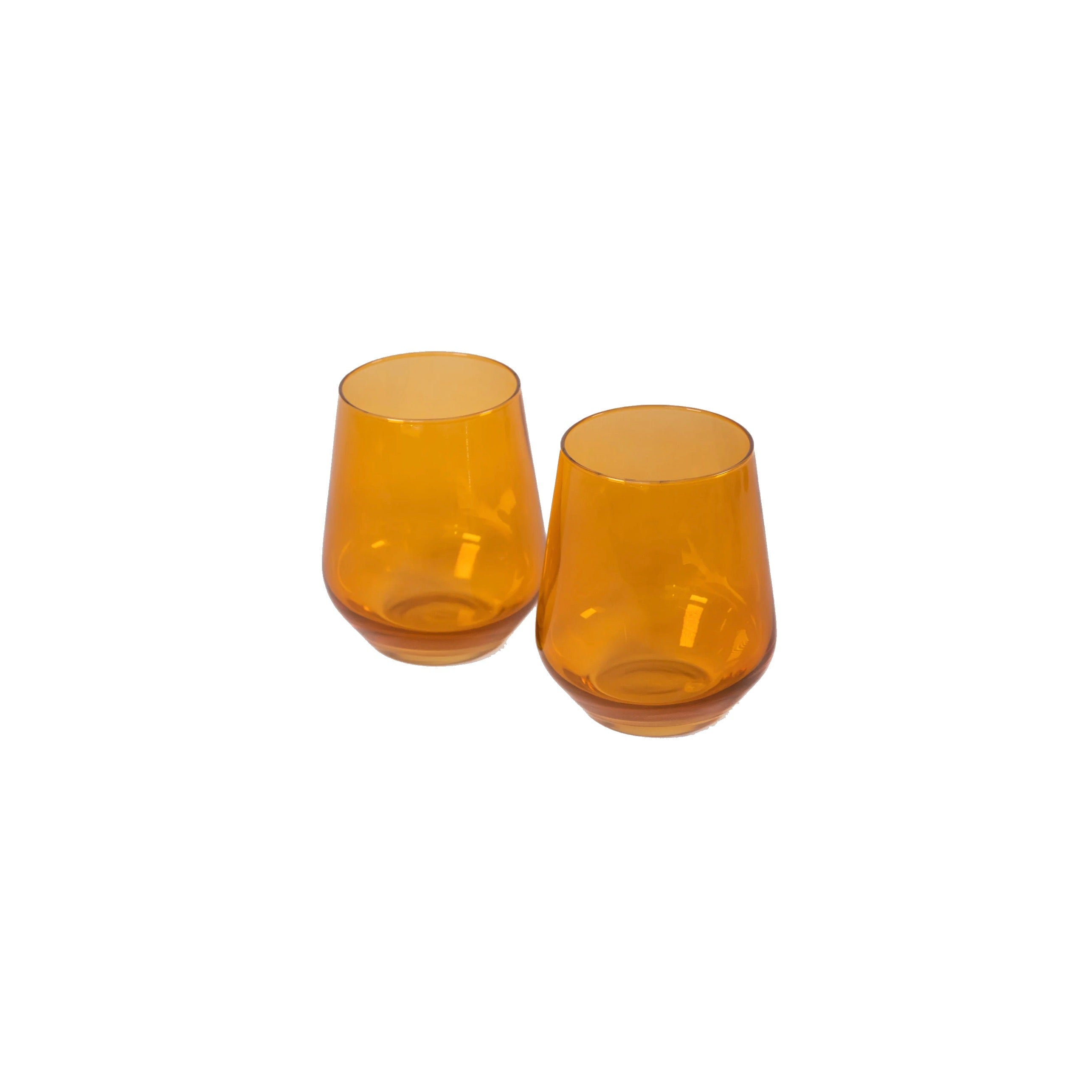 Drinkware estelle colored glass estelle colored glass stemless butterscotch pair Price: $75.00 Qty: 1 2 3 4 5 6 7 8 9 10 11 12 13 14 15 16 17 18 19 20 - Set of 2- Dimensions: 4.3 inches tall x 3.5 inches wide- Capacity: 13.5 ounces - Quality: Lead, Cadmium and BPA free.- Care Instructions: Hand wash only.