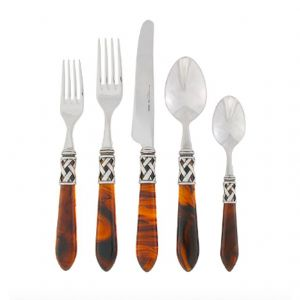 Flatware vietri aladdin antique tortoiseshell five-piece setting Price: $150.00 Qty: 1 2 3 4 5 6 7 8 9 10 11 12 13 14 15 16 17 18 19 20