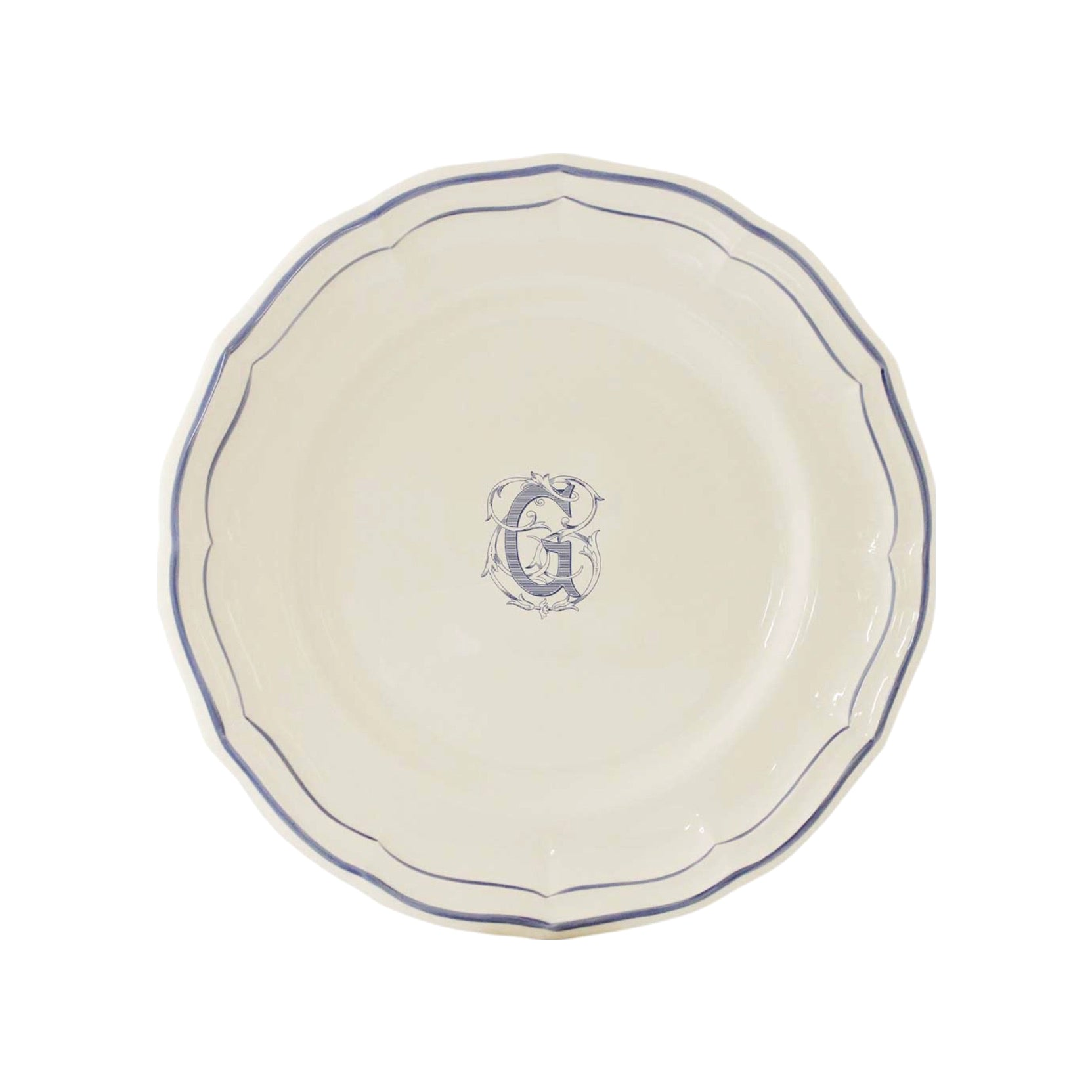 Casual China gien filet bleu dinner plate with monogram g Price: $75.00 Qty: 1 2 3 4 5 6 7 8 9 10 11 12 13 14 15 16 17 18 19 20 Special Import Made in France
