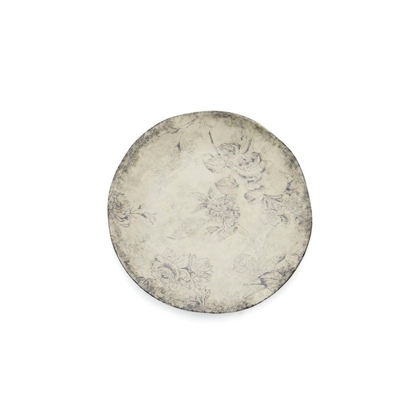 Casual China arte italica giulietta salad/dessert plate Price: $57.00 Qty: 1 2 3 4 5 6 7 8 9 10 11 12 13 14 15 16 17 18 19 20 A lovely smoky rim and floral design grace each piece of our Giuletta Collection. This collection has a romantic, modern feel that adds grace and charm to any table. Add the Elena Flatware, Volterra Nero or Finezza Grey Charger to layer in texture. Italian ceramic, Hand made in Italy. Microwavable & dishwasher safe on the low-heat/air-dry setting. 8.75"" D