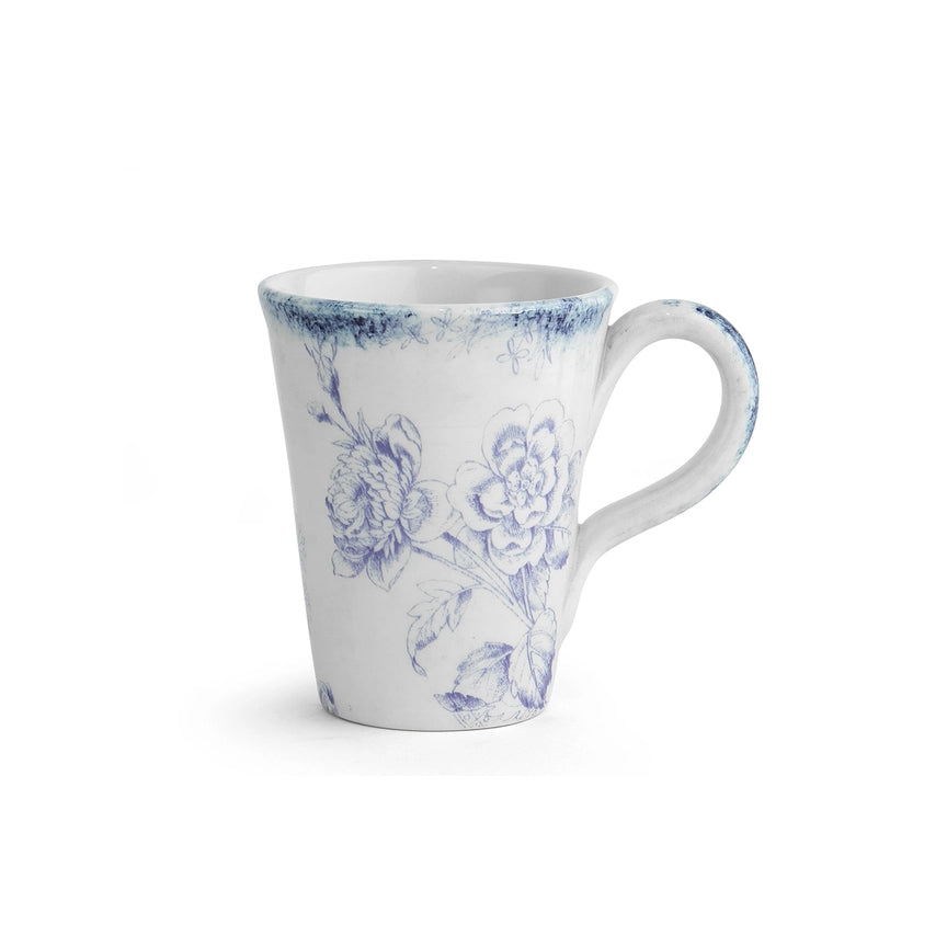 Casual China arte italica giulietta blue mug Price: $55.00 Qty: 1 2 3 4 5 6 7 8 9 10 11 12 13 14 15 16 17 18 19 20 The soft floral pattern of our Giulietta Blue is classic and perfect for year round entertaining. Italian ceramic, Hand made in Italy. Dishwasher safe on the low-heat, air dry cycle. Microwave Safe. 4"" D x 4.5"" H