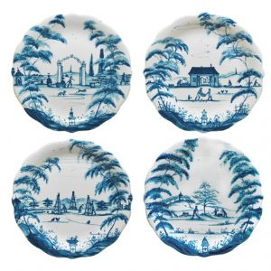 Casual China juliska country estate delft blue party plates set of four Price: $135.00 Qty: 1 2 3 4 5 6 7 8 9 10 11 12 13 14 15 16 17 18 19 20 Dimensions: 8.5' W Style number: CE63SET/44 From our Country Estate Collection- An afternoon stroll about the grounds is a lovely interlude, indeed. Each plate in our collection of four highlights a different charming location that you may explore on your walk. Use them as a beautiful way to gather small household items like spare change and buttons, or to serve your favorite nibbles. Featuring: Apple Orchard, Rose Arbor, and Spring Gardening scenes. Measurements: 8.5' W Made of Ceramic Stoneware Made in Portugal Oven, Microwave, Dishwasher, and Freezer Safe