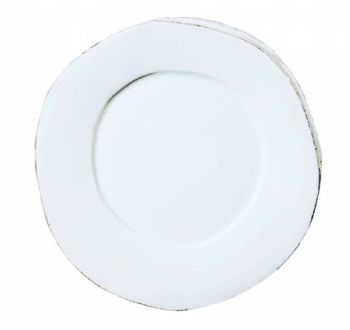 Casual China vietri lastra white european dinner plate Price: $48.00 Qty: 1 2 3 4 5 6 7 8 9 10 11 12 13 14 15 16 17 18 19 20 The Lastra White European Dinner Plate is rustic, chic, and sophisticated. Of the two Italian dinner plates in the Lastra collection, this is the smaller one. An overlapping wooden mold, used for centuries to form cheeses throughout Italy, inspired this rustic white dinner plate collection. 10.5'D LAS-2606W Handcrafted in Italy