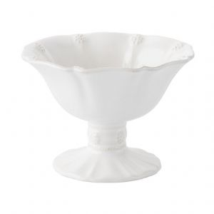 Casual China juliska berry & thread whitewash small footed compote Price: $46.00 Qty: 1 2 3 4 5 6 7 8 9 10 11 12 13 14 15 16 17 18 19 20 Measurements: 5.5' W x 5' H Capacity: 1 quart Made of Ceramic Stoneware Made in Portugal
