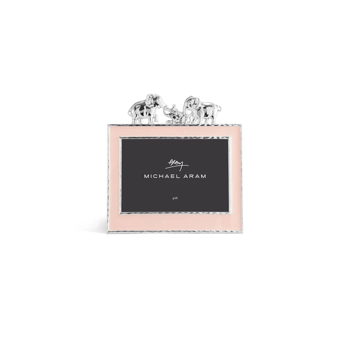 Baby Gifts michael aram elephant frame pink enamel 4x6 Price: $105.00 Qty: 1 2 3 4 5 6 7 8 9 10 11 12 13 14 15 16 17 18 19 20 This collection is inspired by the joy and wonderment of children. They are objects that may capture their unique excitement at the world around them and our precious memories of them as they experience the world. ""There is no greater joy for me than to spend every small moment I can with my young children. Each game of tag, each precious scribble or crooked letter, sweet hugs and high fives cumulatively are my greatest gifts. In creating gifts for children, I hope to create objects which are enjoyed now and will become keepsakes in years to come."" DETAILS & MATERIALS Holds 4 x 6 Photo 6.5""L x 7""W Nickelplate Pink Enamel SKU: 133237